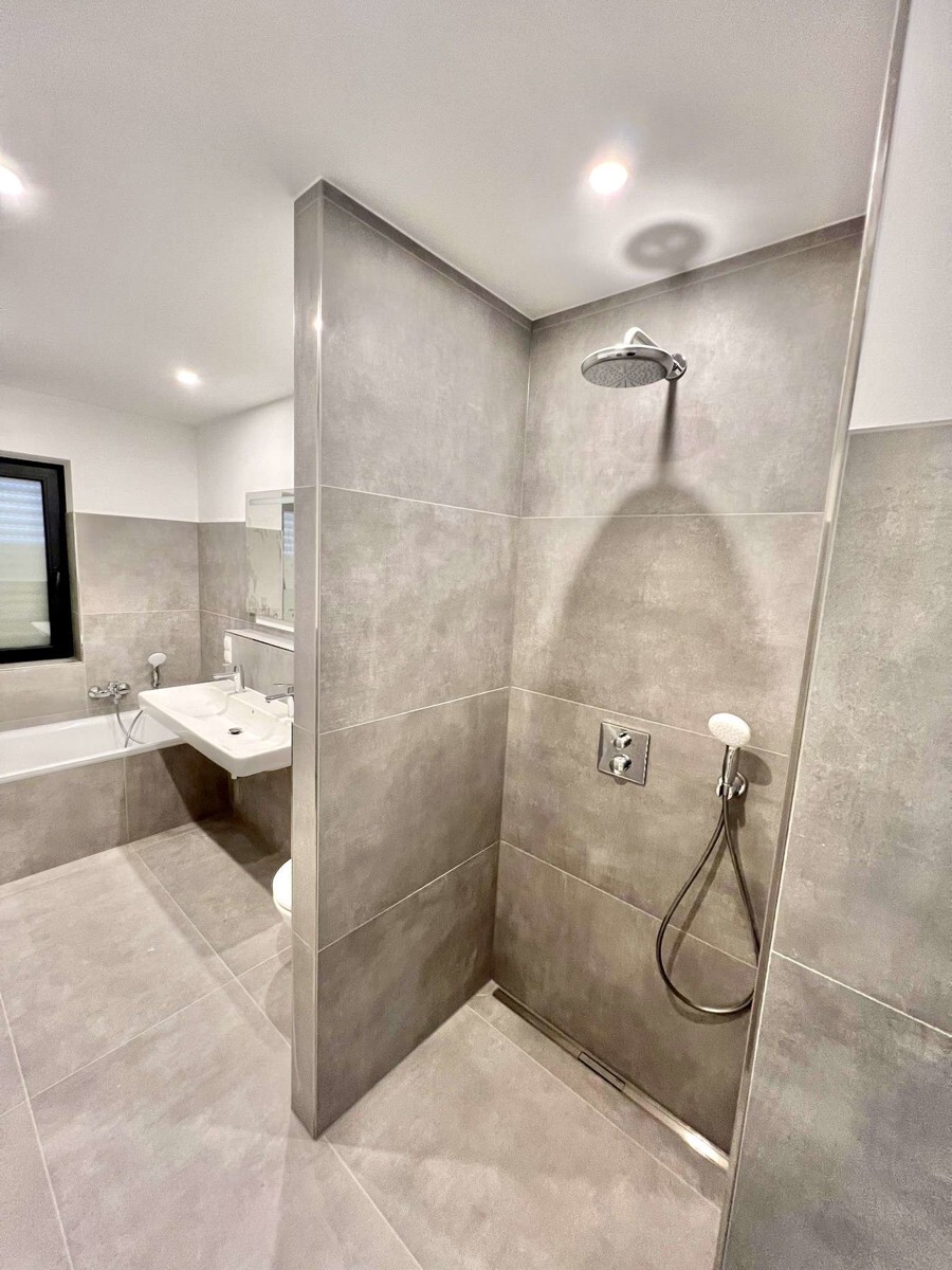 Size: 158 sqm (1701 sqfeet) Plot size: approx. 200 sqm (2153 sqfeet) Living / dining room: 1 New fitted kitchen with appliances: stove, oven, hood, fridge and freezer, dishwasher Bedrooms: 4 Bathrooms: 2 (1x shower/ 1x shower + tub) Basement: 2 rooms ( 1x hobby room /1x utility room) Floor: high quality vinyl and tiles Appliance: el. shutters, mirrors in the bathrooms, lights fixtures Pet’s allowance: yes (small, fenced yard) Heating: oil heating Patio: 1 (will be finalized within view weeks) Parking spaces: 1 x parking spot deposit: 2 cold rents American housing contract welcome