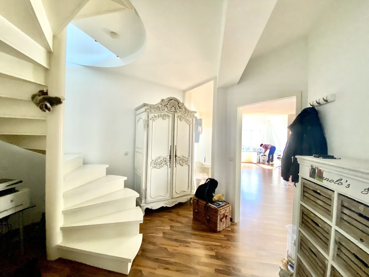 Are you looking for a duplex penthouse in Wiesbaden? Spacious 3- room (2 bedroom) with 166 m² / 1787 sqft duplex penthouse condo with elevator on American 4th floor / German 3rd floor, spread over 2 levels with a nice view towards Wiesbaden downtown. This condo which is located in a historic villa is equipped with two balconies, fitted kitchen, fireplace, garage, 1.5 baths and elevator.