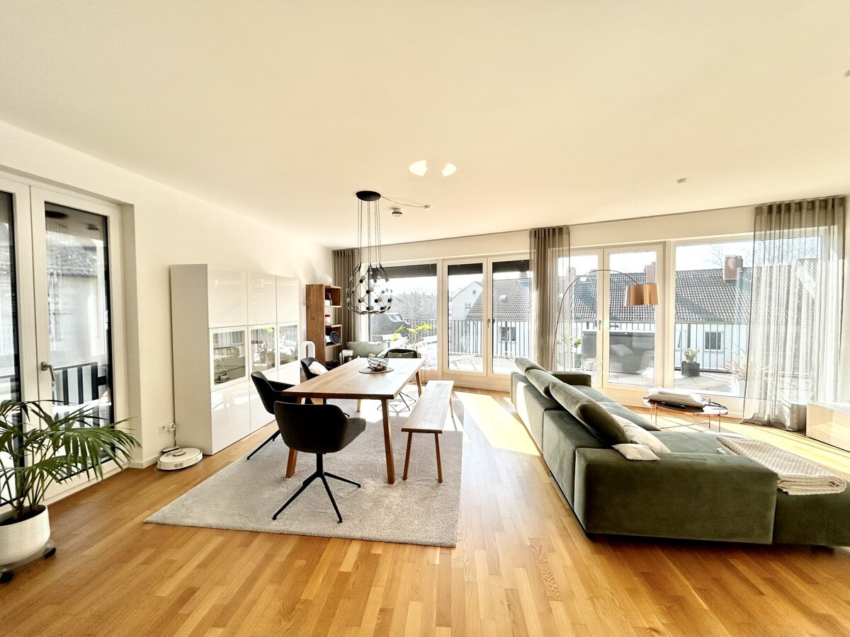 We are delighted to offer you this exclusive condo with penthouse-feeling for rent in Wiesbaden. The building, constructed in 2017, is in excellent condition. The condo boasts a spacious living area of approximately 127 sqm (1367 sqft) and comprises three and half rooms, including two bedrooms, walk-in closet, small storage room and two bathrooms. The modern design and high-quality furnishings give the condo a luxurious ambiance. Of particular note is the terrace, which offers breathtaking views of the surroundings and provides a perfect spot for relaxation and enjoyment. Additionally, the apartment is fully basemented, offering additional storage space. The condo is ideal for discerning tenants seeking a premium property. Its location in Wiesbaden provides easy access to the city center, as well as a variety of shopping, dining, and leisure options. Please feel free to contact us for further information or to arrange a viewing. We look forward to personally presenting this dream penthouse to you.