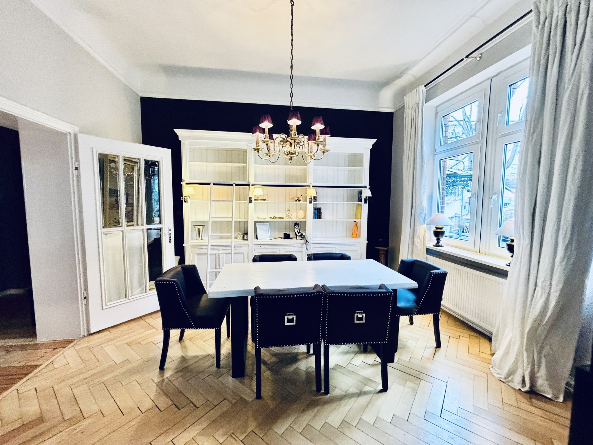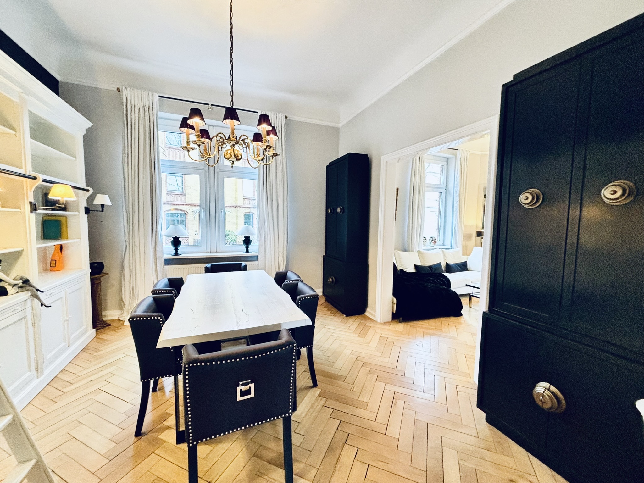 Are you looking for a central, yet quiet dream apartment? This high-quality and fully furnished designer apartment with a beautiful view will inspire you. The equipment includes a spacious living-dining area with bay window, a guest room with built-in wardrobe, a fully furnished bedroom, a modern fitted kitchen, a modern designer bathroom with walk-in shower, etc.,. The dream apartment is only a 9-minute walk from the pedestrian zone. _________________________________________________________________ Sie suchen eine zentrale, dennoch ruhige Traumwohnung? Diese hochwertig eingerichtete und vollständig möblierte Designer Altbauwohnung mit wunderschönen Ausblick wird Sie begeistern. Die Ausstattung umfasst u.a. einen großzügigen Wohn-Essbereich mit Erker, ein Gästezimmer mit Einbauschrank, ein vollständig eingerichtetes Schlafzimmer, eine moderne Einbauküche, ein modernes Designer Bad mit walk-in Dusche etc.. Die Traumwohnung ist nur 9 Gehminuten von der Fußgängerzone entfernt.