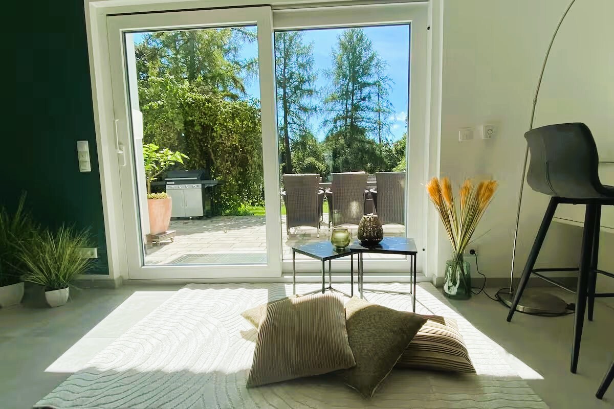 Luxurious Fully Furnished Maisonette with “House-in-House” Character in Wiesbaden-Breckenheim. This luxurious, fully furnished maisonette apartment offers an exceptional living experience. With a generous living space of approx. 230 sqm (2,476 sqft), spread over two floors, the property provides ample space for the whole family. Property Highlights Recently modernized in 2024, the apartment impresses with its high-quality, elegant finishes. Floors are laid with stylish parquet and tiles, creating a warm and inviting atmosphere. The home features six rooms, including three spacious bedrooms and three modern bathrooms. The new, modern fitted kitchen comes fully equipped with premium appliances and leaves nothing to be desired. A special highlight is the electric fireplace, perfect for cozy evenings, while underfloor heating and air conditioning ensure a pleasant indoor climate year-round. ______________________________________________________________________________________________________ Luxuriöse, vollmöblierte Maisonette mit „Haus-im-Haus“-Charakter in Wiesbaden-Breckenheim. Diese luxuriöse, vollmöblierte Maisonettewohnung bietet ein außergewöhnliches Wohnerlebnis in einer der gefragtesten Wohnlagen Wiesbadens. Mit einer großzügigen Wohnfläche von ca. 230 m² (2.476 sqft), verteilt auf zwei Etagen, bietet diese Immobilie reichlich Platz für die ganze Familie. Objekthighlights Im Jahr 2024 zuletzt modernisiert, überzeugt die Wohnung durch ihre hochwertige und elegante Ausstattung. Die Böden sind mit stilvollem Parkett und Fliesen versehen, was eine warme und einladende Atmosphäre schafft. Das Zuhause umfasst sechs Zimmer, darunter drei geräumige Schlafzimmer und drei moderne Badezimmer. Die neue, moderne Einbauküche ist mit hochwertigen Geräten voll ausgestattet und lässt keine Wünsche offen. Ein besonderes Highlight ist der elektrische Kamin, der für gemütliche Abende sorgt, während Fußbodenheizung und Klimaanlage ganzjährig für ein angenehmes Raumklima sorgen.