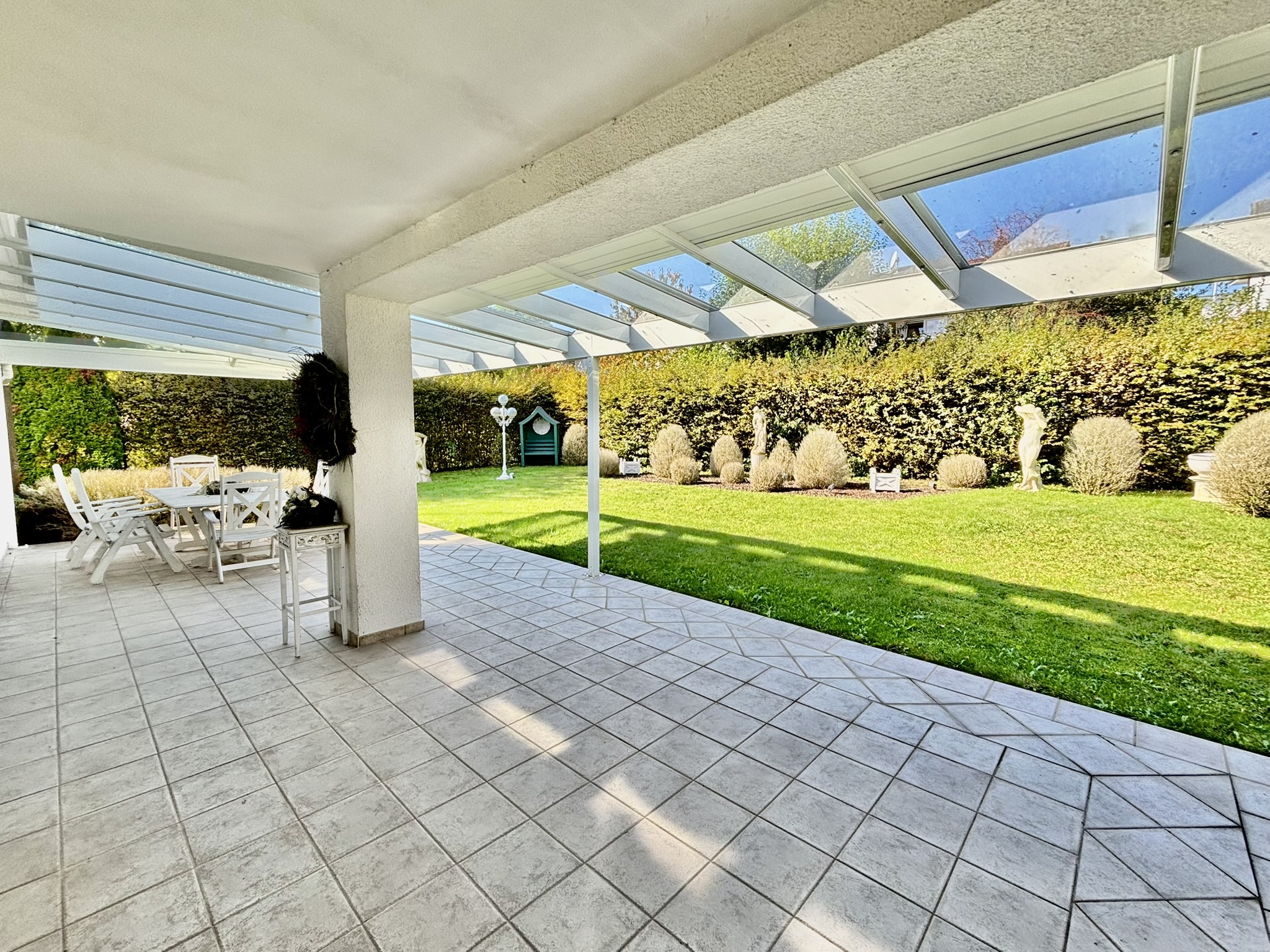 ✅ Rent: €3600 + €200 cost of ownerhsip + €200 utilities + electricity+ oil ✅ Size: approx. 178 sqm (1,915 sqft), spread over two levels + basement ✅ Plot size: approx. 683 sqm (7,352 sqft) ✅ Living/Dining Room: 1 spacious living/dining area with garden access ✅ Kitchen: Fully fitted with appliances (refrigerator & freezer, oven, cooktop, hood, dishwasher) ✅ Bedrooms: 4–5 (plus office) ✅ Bathrooms: 2 full daylight bathrooms + 1 guest WC ✅ Basement: utility room, laundry, workshop, in-house garage access + attic storage ✅ Outdoor Space: Private landscaped yard with large covered terrace + 2 balconies ✅ Parking: Garage (inside the house) + 1 parking spot in front ✅ Flooring: tiled flooring & carpet ✅ Appliances & Fixtures: built-in wardrobes, windows (1998 renovation) ✅ Pet’s allowance: yes ✅ Heating: floorheating on 1st floor / oil central heating (1996) ✅ Security Deposit: 2 months’ cold rent ✅ US Housing Contract: Accepted