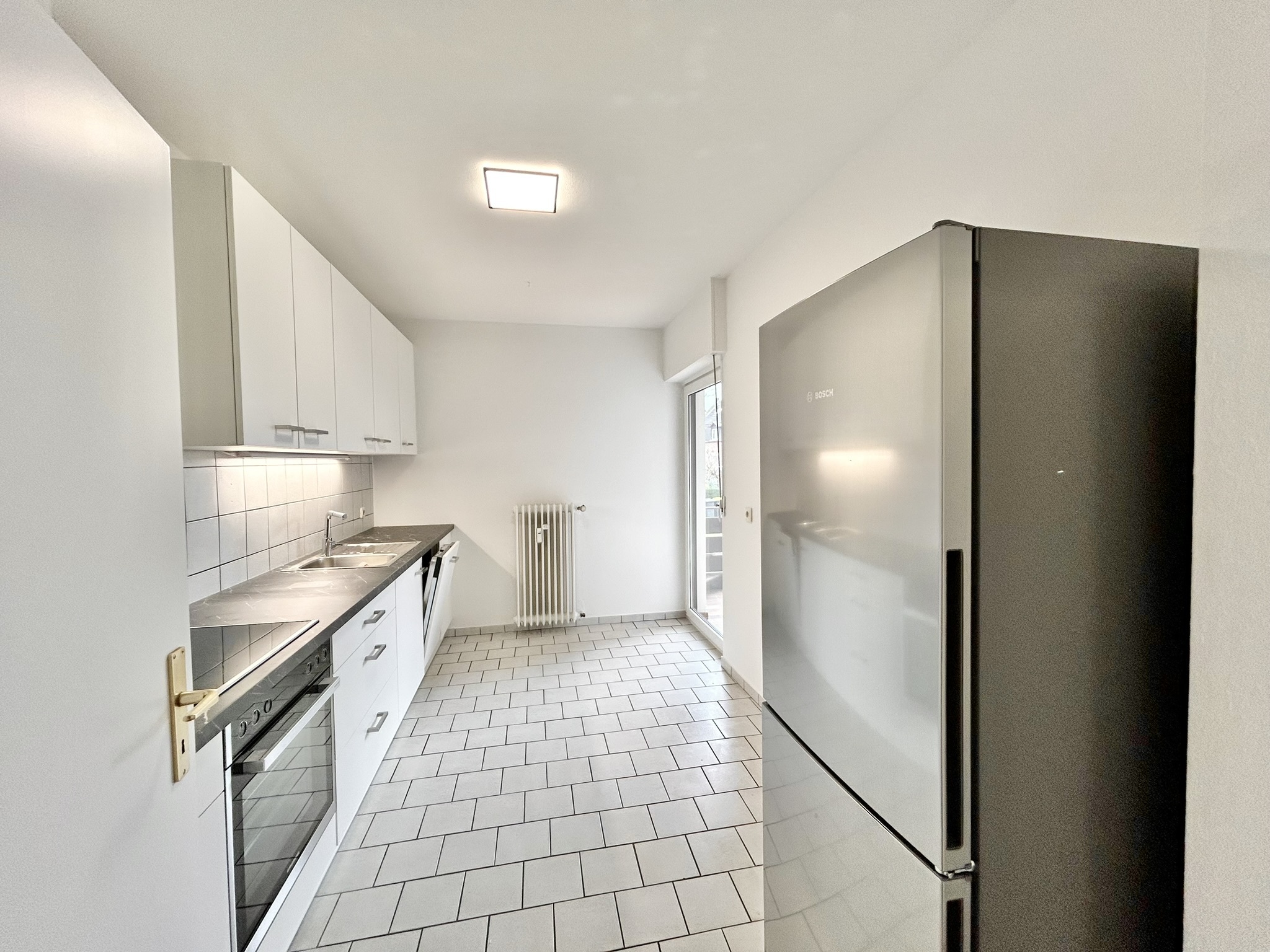 Size: 108 sqm (1163 sqft) Living / dining room: 1 Balcony: 1 Fitted kitchen with appliances: stove, oven, hood, dishwasher, fridge and freezer Bedrooms: 3 Bathrooms: 1.5 (shower & tub) Utility / laundry room: shared in the basement with hookups for washer and dryer Basement for storage: 1 Floor: Parquet (in the living area) Appliance: shutters (rolladen), lights fixtures, mirrors and closets in the bathrooms, Pet’s allowance: negotiable Heating: central gas heating Parking: 2 assigned parking slots (included) deposit: 2 cold rent Maximum contract duration: up to 3 years American housing contract accepted
