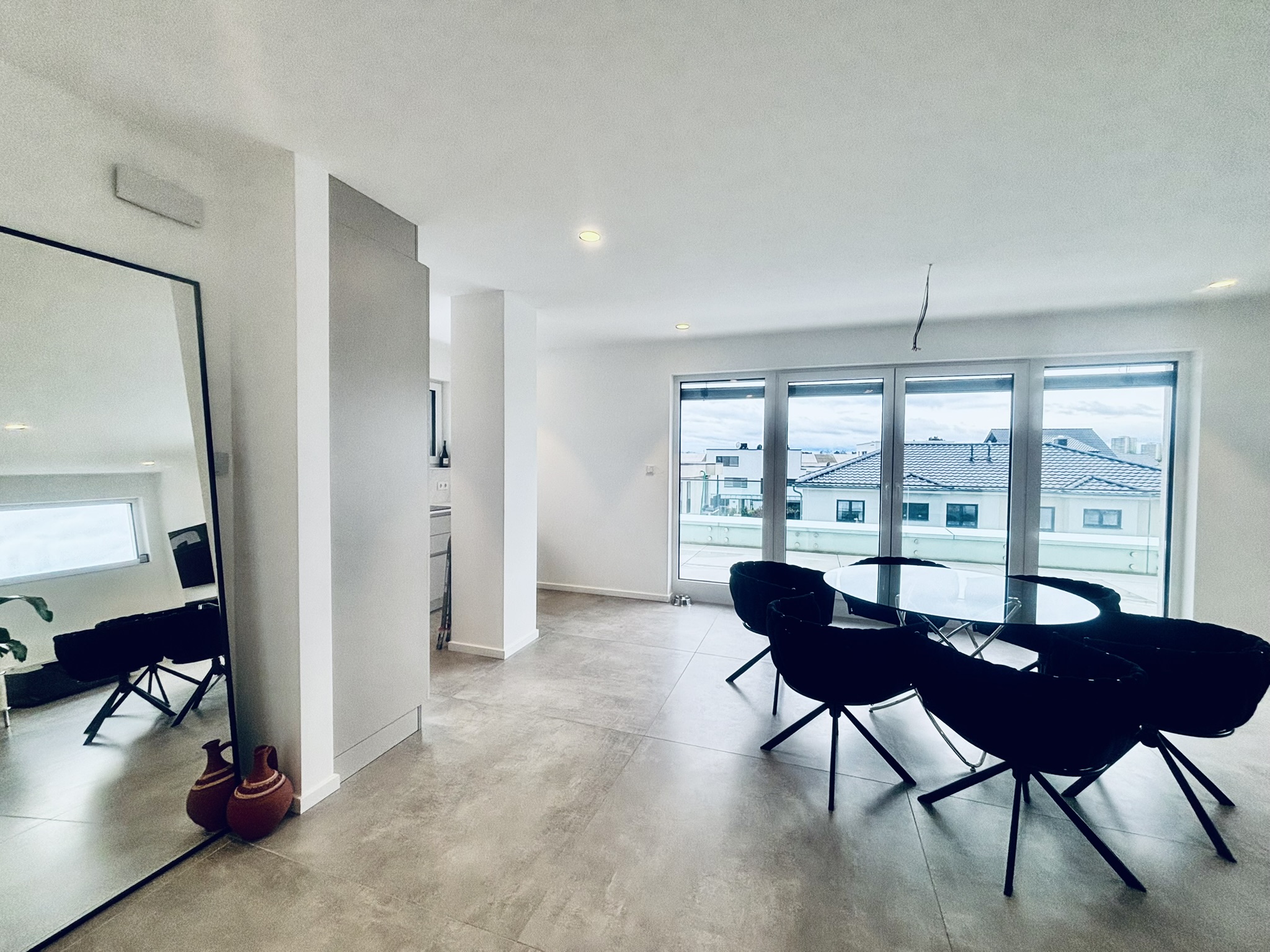 ✓ Living area: 76 sqm (approx. 818 sq ft) ✓ Living / dining area: 1 with open-plan kitchen ✓ Fully fitted kitchen with appliances: dishwasher, freezer, oven, refrigerator, electric stove & extractor hood ✓ Bedrooms: 1 ✓ Bathrooms: 1 (shower) ✓ Parking: 1 on-site parking space ✓ Terrace / balcony: Yes ✓ Shared laundry: Washing machine available ✓ Heating: Underfloor heating (efficient air-source heat pump) ✓ Flooring: Modern large-format tiles ✓ Features: Electric shutters, lighting fixtures, smart home system, washing machine (basement) ✓ Pets: Negotiable ✓ Minimum rental period: 6 months ✓ Security deposit: €4,000 ✓ Contract type: American housing contract accepted