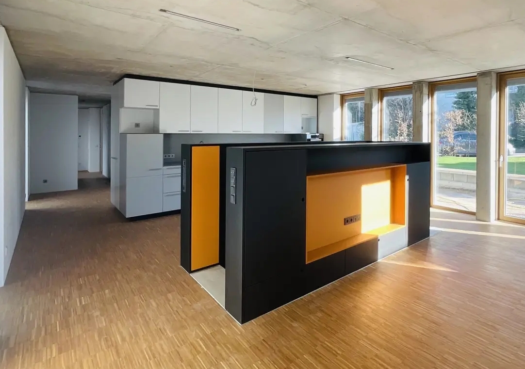 Are you looking for a new, spacious and unique, high quality condo in Mainz (Hartenberg-Münchfeld? Only 5 min drive from Mainz downtown. Approx. 12 min to Mainz-Kastel, 16 min to Clay, 20 min to Hainerberg and 16 min to Amelia Earhart Building. NEW exclusive 1st occupancy, spacious 5-room (4 bedroom) duplex condo with own laundry / storage room, with patio and private yard. This condo is equipped with fitted kitchen, three and half baths and one parking spot.Two bedrooms and two baths are located in souterrain – one room have a separate entrance and could be used also as a separate office.