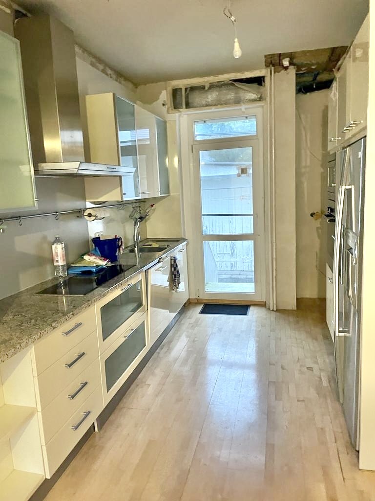 Max. rent duration 48 months American housing contract welcome Size: 156 sqm (1669 sqfeet) Plot size: approx. 377 sqm (4058 sqfeet) Living / dining room: 1 Fitted kitchen with appliances: stove, oven, hood, side by side fridge, dishwasher. Bedrooms: 3 Bathrooms: 1.5 (1x shower) Storage: in the basement + laundry + utility / heating room + in garage Floor: parquet, laminate, ceramic tiles Appliance: lights fixture in all rooms Pet’s allowance: yes Heating: central gas heating Patio / balcony: 1 Yard: fenced Parking spaces: garage (38 sqm / 409 sqft) + two add. parking spots deposit: 2 cold rents