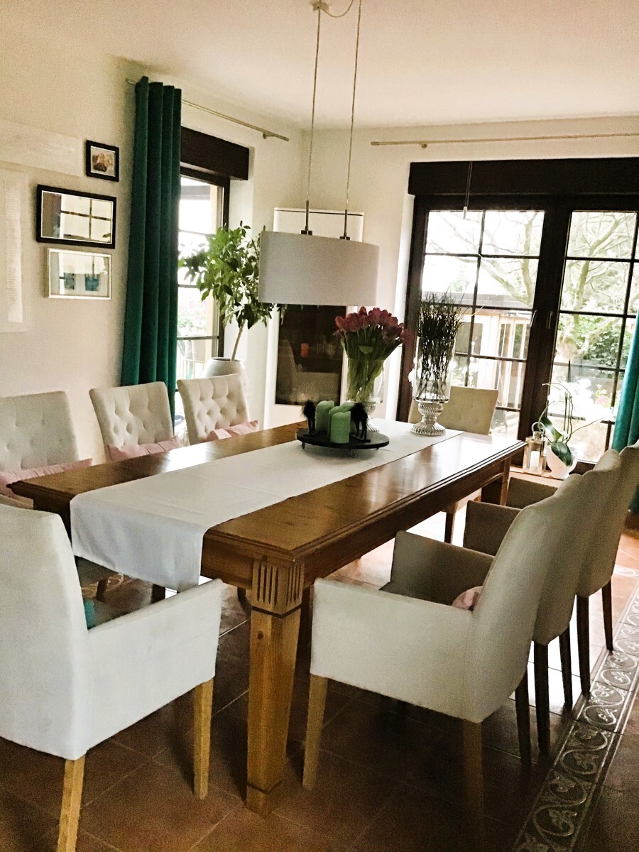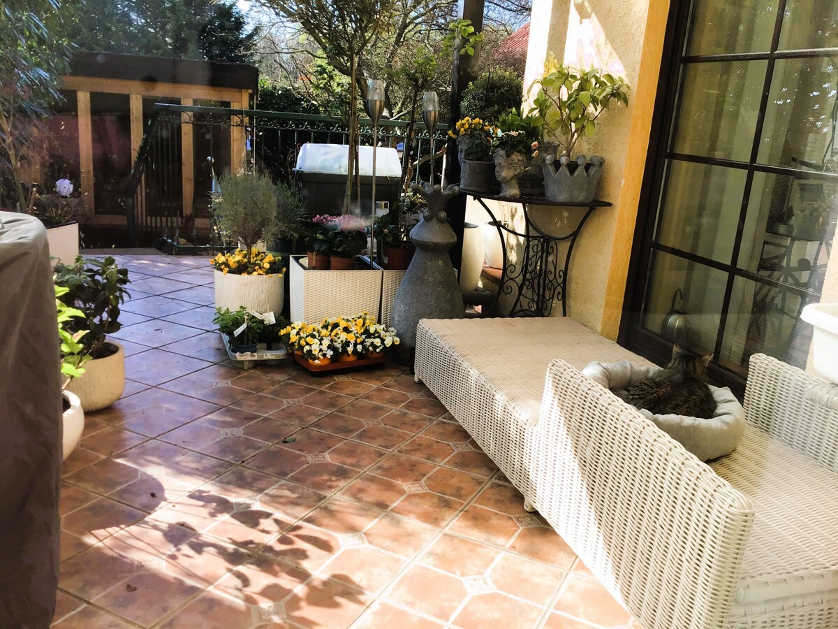 American housing contract welcome Size: 240 sqm (25837 sqft) Plot sizes 437 sqm (4704 sqft) Living room with fireplace and separate dining area Bedrooms: 6 Fitted kitchen with appliances: dishwasher, oven, refrigerator, freezer, el. stove, hood Bathrooms: 3,5 (tub and shower) Basement: granny flat with kitchen plus guest room + laundry + heating room Parking: garage with add. storage+ 3 parking spots on site Floor: ceramics with floor heating Appliance: shutters, light fixtures, Outdoor: fenced yard, terrace, winter / summer garden lounge (not heated) Pet’s allowance: negotiable Deposit: 2 cold rents