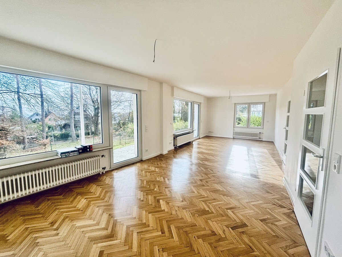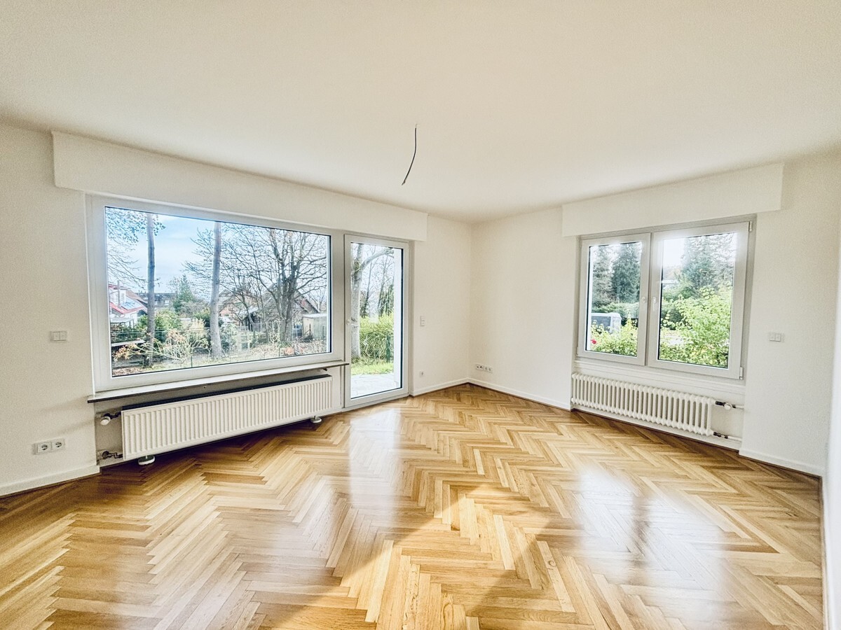 • Size: approx. 159 sqm (1711 sqft) + storage • Plot size: approx. 468 sqm (5038 sqft) • Living / dining room: 1 • Bedrooms: 3 • Bathrooms: 1.5 (shower) • Fitted kitchen with appliances: stove, oven, hood, dishwasher • Basement: several storage/ hobby rooms, laundry with hook-ups for washer & dryer • Floor: parquet, laminate & tiles • Pet’s allowance: negotiable • Heating: central gas • Patio / balcony: 2 • Yard: fenced • Appliance: el. shutters, new 3x glazed windows, EV charging, fiber optics, light fixtures • Parking: double garage + 2 parking spots on-site • Deposit: 2 cold rents • American housing contract is welcome