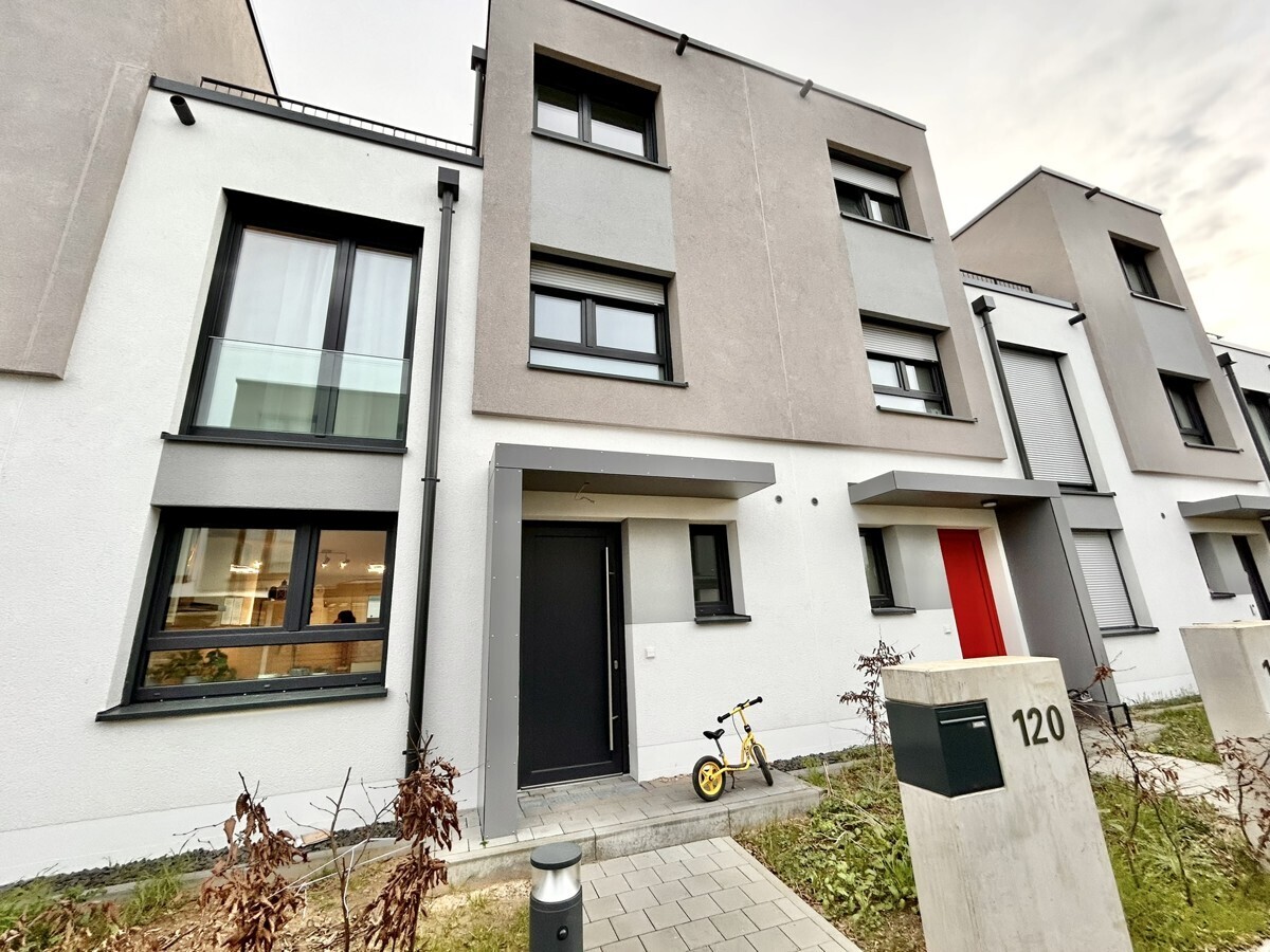 - Available 6th of February 2025 – - The pictures depict a comparable townhouse For rent is a nearly new end-of-the-row house in Wiesbaden, built in 2020. This three-story house features approximately 130 m² (1399 sqft) of living space and offers a total of 5 rooms, including 4 bedrooms, 2 bathrooms, and a fitted kitchen. Additionally, the house boasts a sunny terrace, small yard with a garden shed, and a rooftop. Situated in the new development area of Wiesbaden-Nordenstadt, this townhouse is in excellent condition and will be available from February, 2025. Prospective tenants will have the opportunity to reside in a modern and comfortable home. Please feel free to contact us for further information or to arrange a viewing. We look forward to personally presenting this townhouse to you.