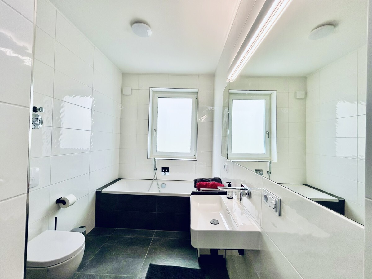 Location: Wiesbaden-Bierstadt, located in a brand new developed area, a quiet residential neighborhood just a few meters from fields and trails. Only 10 min from Clay, 5 min to downtown Wiesbaden, 7 min to Amelia, 10 min to Mainz-Kastel. You will find all that you need, bakeries, grocery stores, restaurants, kindergarten, school, or stores in Bierstadt. The state capital has around 276,000 inhabitants and is one of the core cities in the Rhine-Main area. Wiesbaden is a conveniently located location. A very good infrastructure, grocery stores, kindergartens, schools and a variety of sports and leisure facilities offer a wide range of opportunities for young and old.