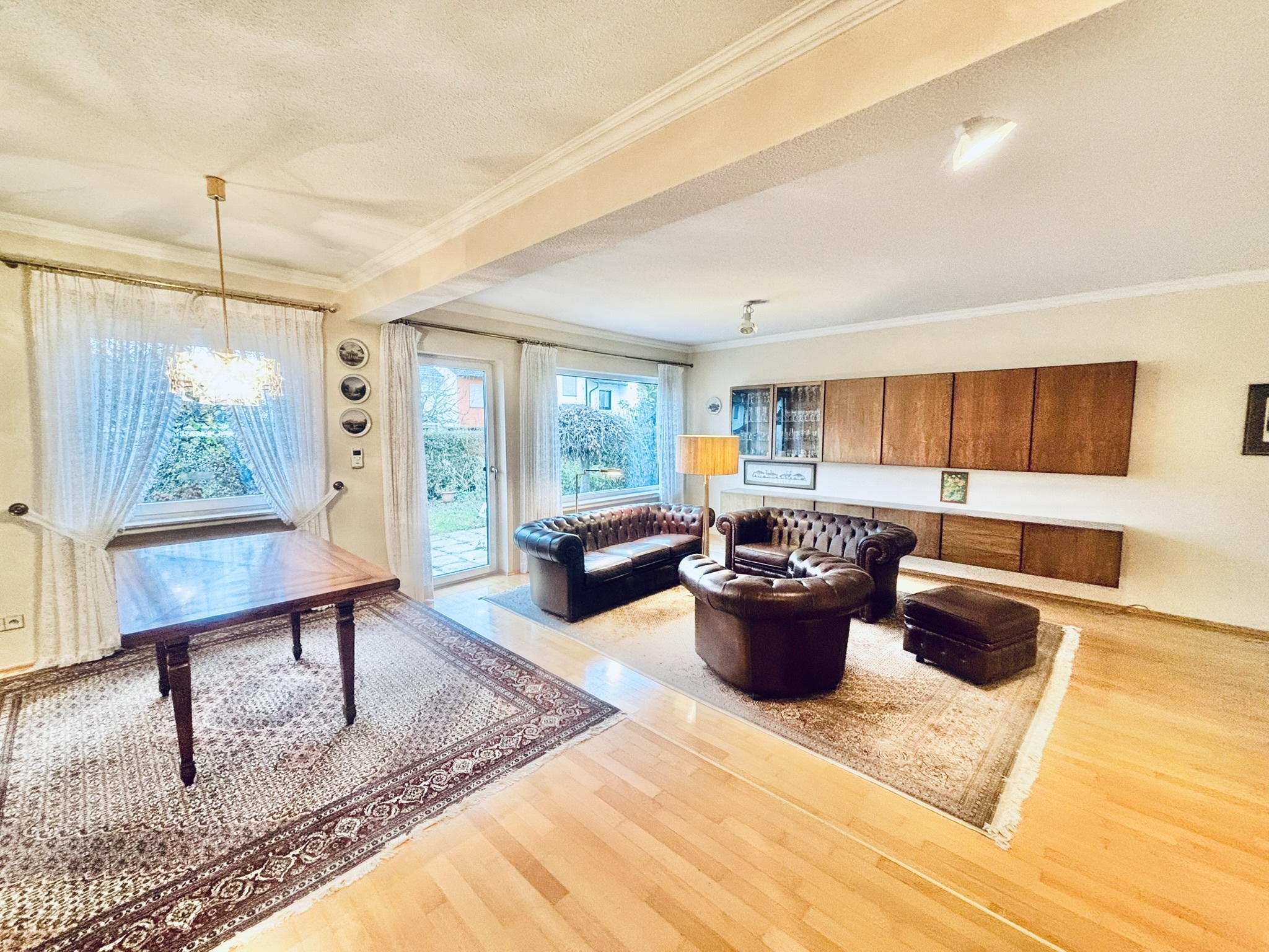 Size: approx. 153 sqm (1646 sqft) + 31 sqm hobby + storage + heating / laundry room Plot size: approx. 457 sqm (4919 sqft) Living-dining room: 1 Bedrooms: 4 Fitted kitchen with appliances: dishwasher, oven, fridge & freezer, stove, hood Bathrooms: 2.5 (2x shower and 1x tub) Basement: storage, hobby,+ laundry/heating room Parking: garage + in front of the garage Floor: parquet, vinyl floor & tiles Appliance: el. blinds, light fixtures, fireplace, awning and optional furniture, closets, couch, table etc. Heating: central gas heating Outdoor: fenced yard, patio Pet's allowance: negotiable Deposit: 2 cold rents American housing contract welcome!