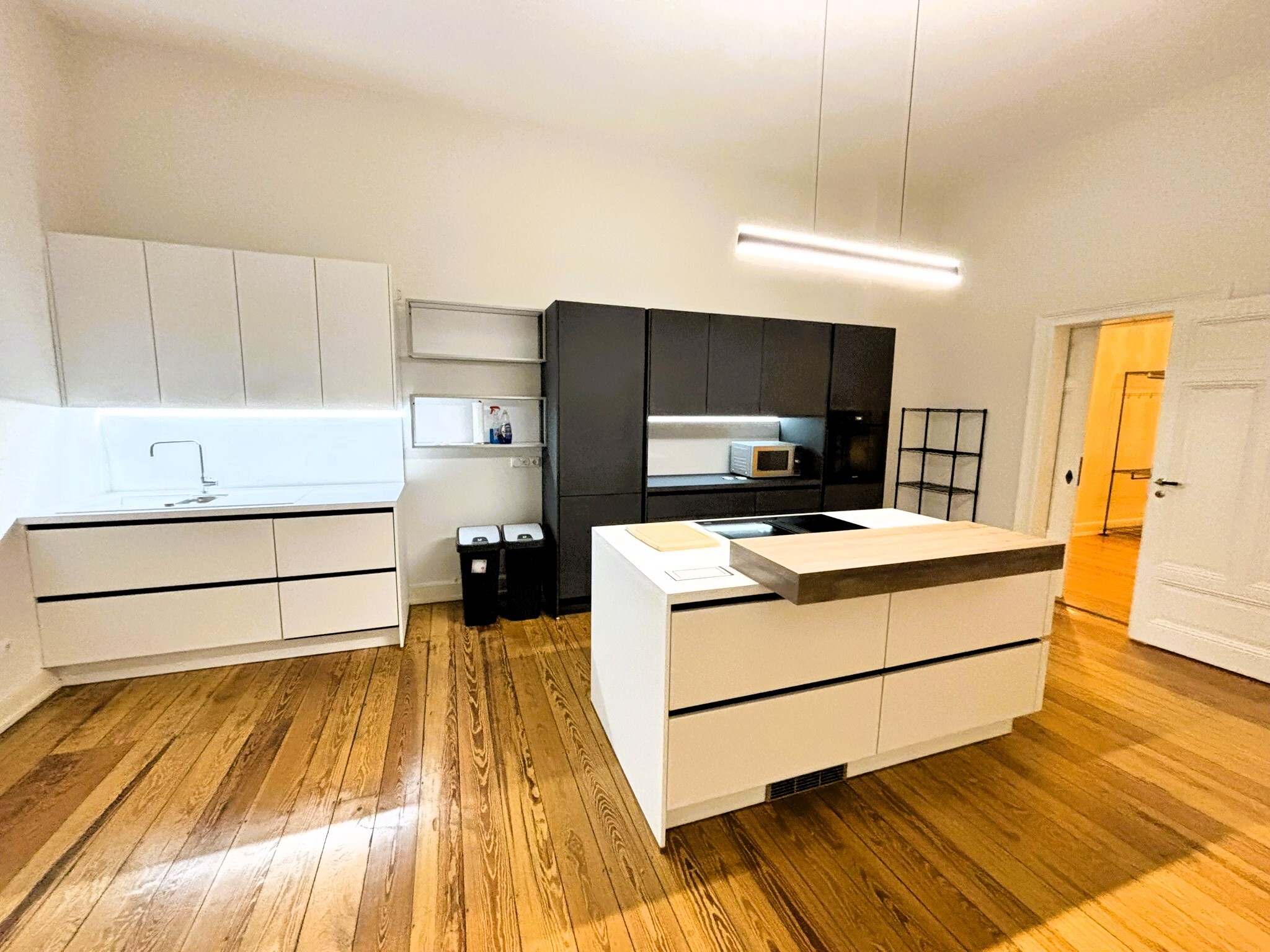 Size: approx. 161 sqm (1733 sqft) Living / dining room: 1 Kitchen: fitted kitchen with appliances: freezer, refrigerator, stove, oven, dishwasher, hood with space for breakfast table Bedrooms: 3 Daylight bathrooms: 2.5 with (shower and tub) with hook-up for washer and dryer Balconies:2 (one covered) Parking: street parking (potential of parking garage under evaluation) High-quality historic wooden floor recently sanded. Appliance: Light fixtures in all rooms, manual shutters, mirrors cupboard, curtain rods. Washer and dryer hookups in the bathroom Storage: small storage in the condo + storage in the basement Pet’s allowance: negotiable deposit: 2 cold rents American housing contract welcome
