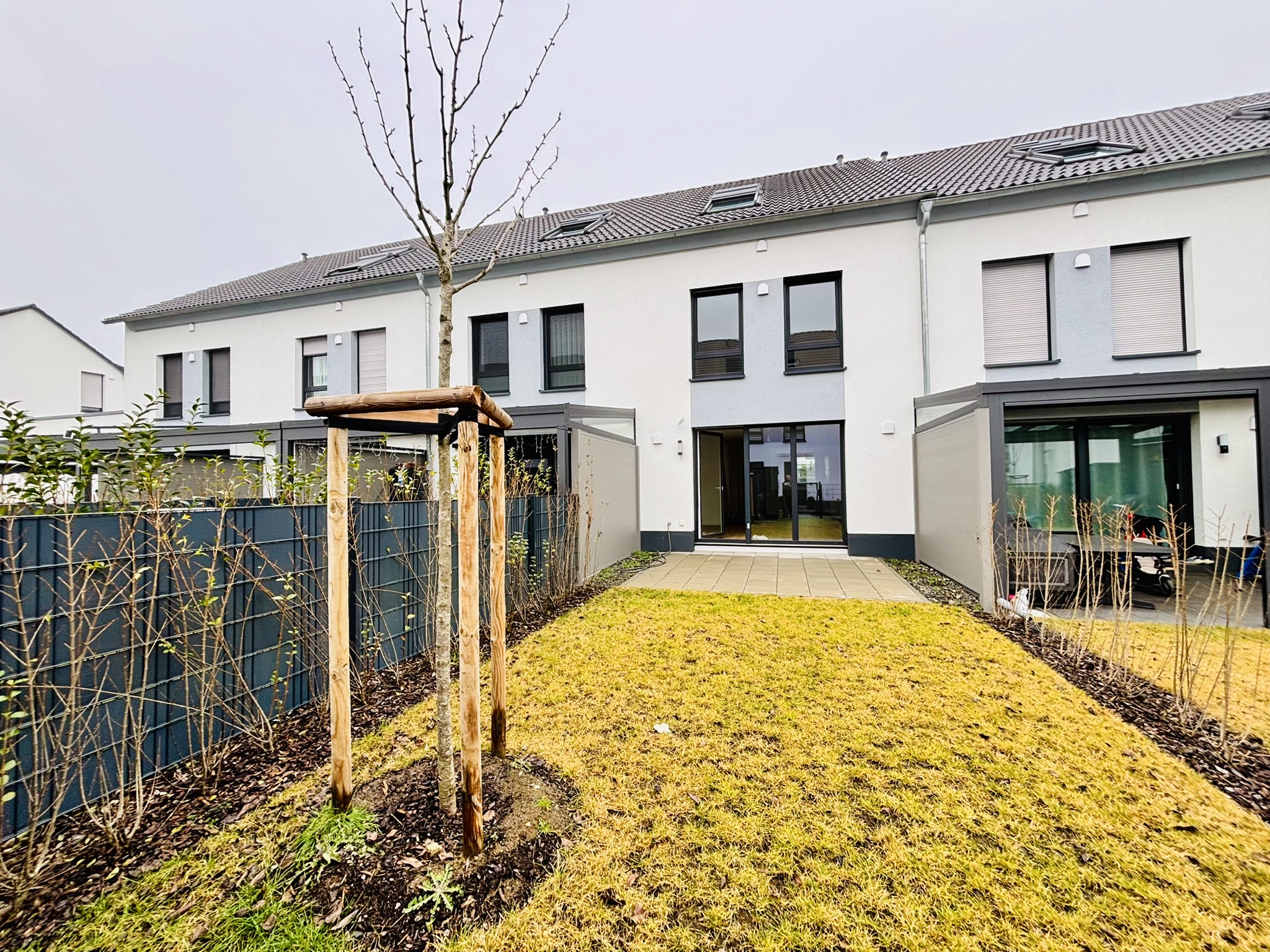 - immediately available - This nearly new three-story townhouse, built in 2023, offers modern living in a sought-after residential area of Wiesbaden. With approximately 141 sqm (around 1,518 sq ft) of living space, the property provides a well-designed layout featuring five rooms, including four bedrooms, two full bathrooms, and a guest toilet. The home is equipped with a high-quality fitted kitchen and impresses with bright, open living areas. A sunny terrace, a private garden with garden shed, and thoughtfully planned outdoor space create an ideal setting for both relaxation and everyday living. This property is ideal for tenants seeking a modern, comfortable, and well-connected home. Please feel free to contact us for further information or to arrange a viewing. We would be delighted to personally present this attractive townhouse to you.