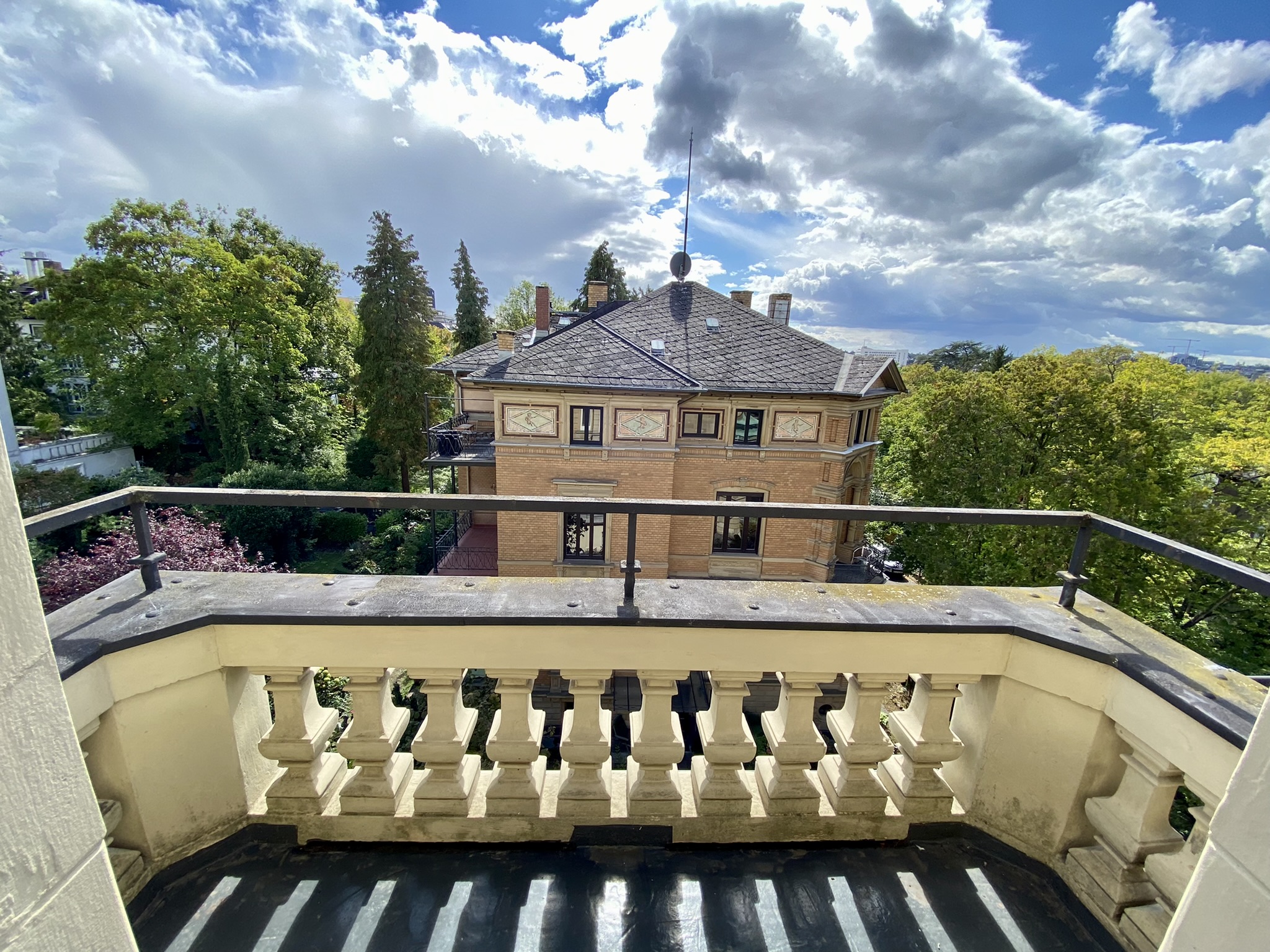 Are you looking for a central, but quiet historic condo in a prime location within view min walking distance to Wiesbaden downtown? Spacious 6-room (5 bedroom) condo on top floor (German 2nd floor) with fitted kitchen in historic neo-renaissance villa with high ceilings and amazing view over Wiesbaden. On-street parking for residence is here no issue. ________________________________________________________________ Are you looking for a central but quiet apartment in an old building in a prime location within walking distance of Wiesbaden city center? Spacious 6-room apartment (5 bedrooms) on the top floor (German 2nd floor) with fitted kitchen in a historic neo-renaissance villa with high ceilings and an impressive view over Wiesbaden. Parking for residents on the street is easily available here.